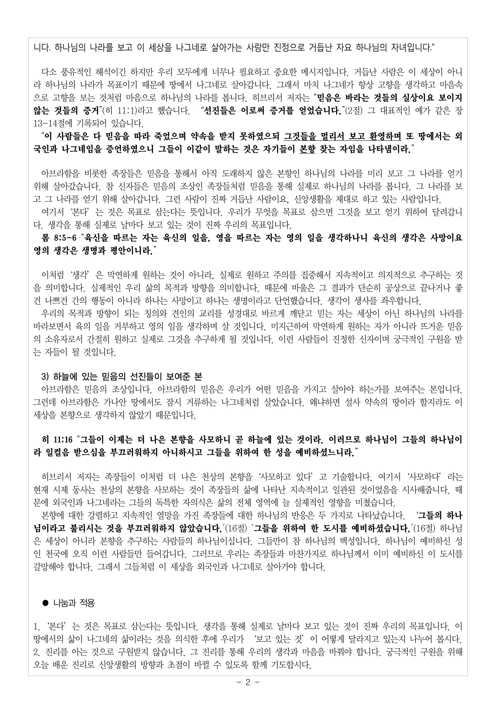 사랑하는사람들 설교