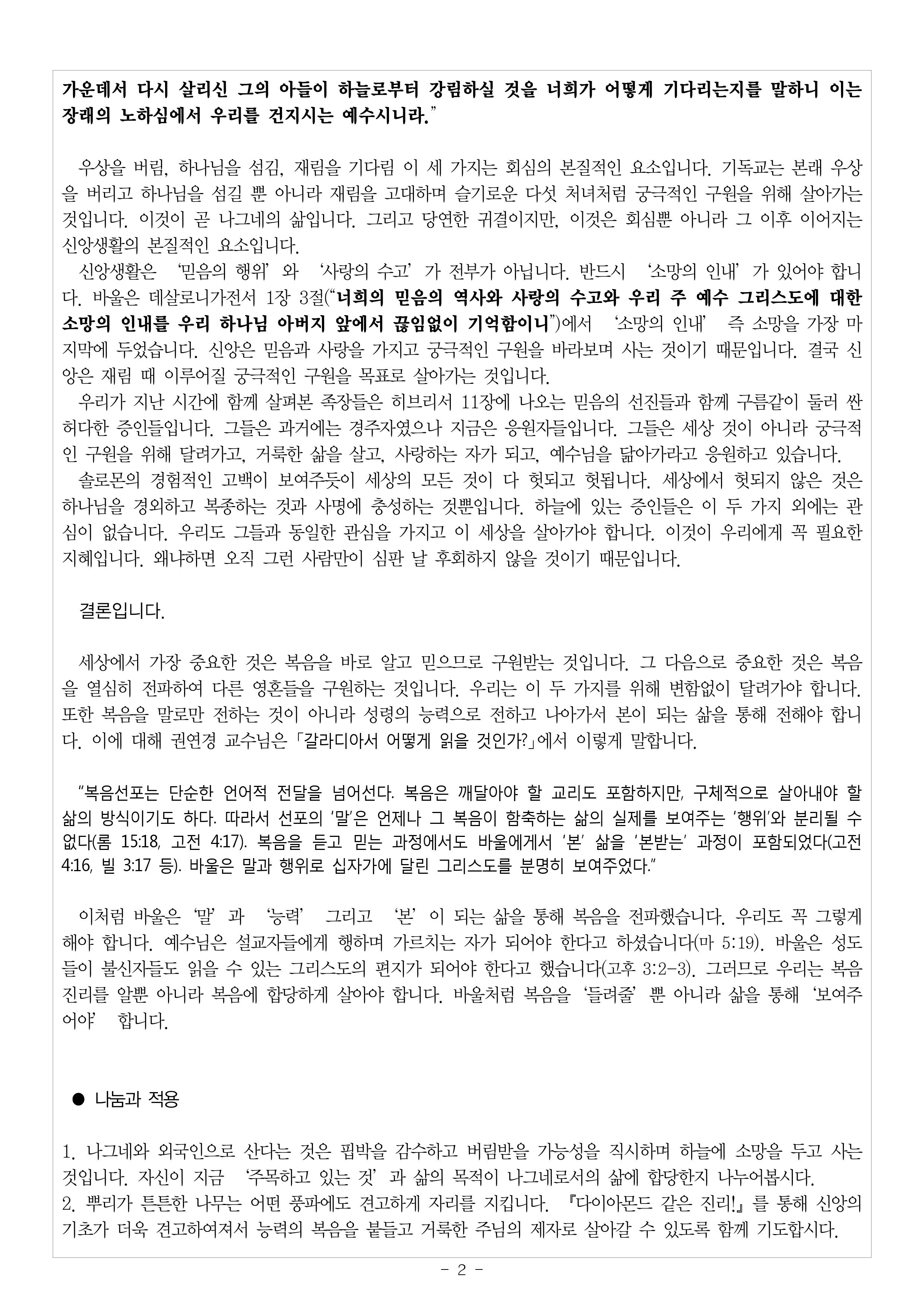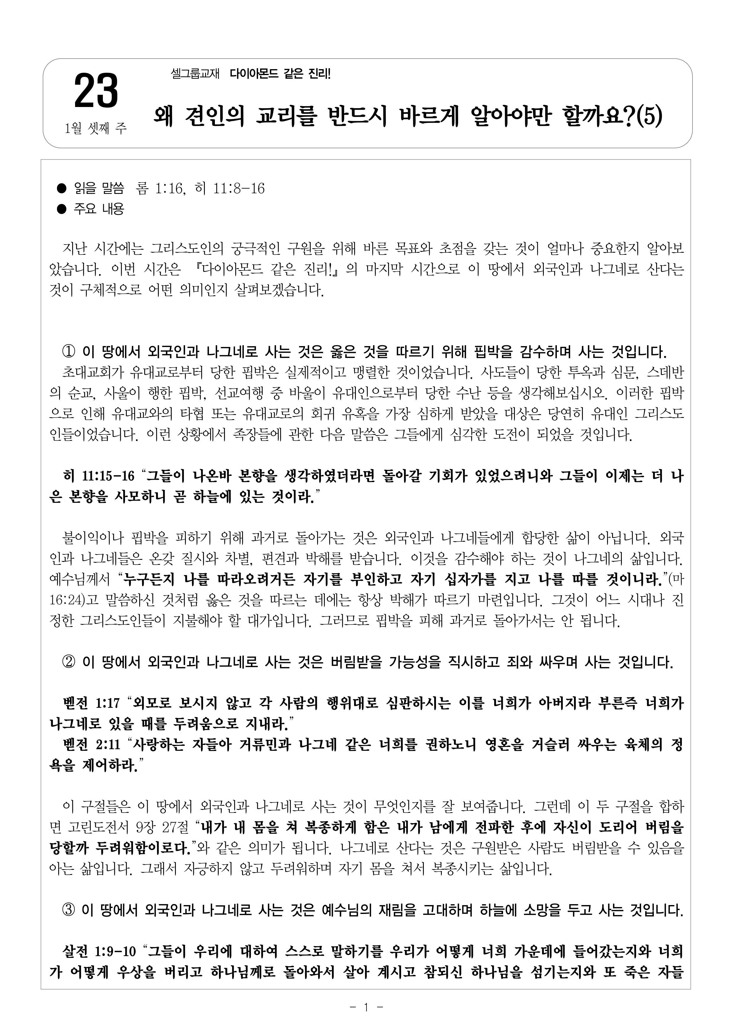 1월 둘째 주 셀그룹교재 [다이아몬드같은 진리]-[4]왜 견인의 교리를 반드시 바르게 알아야만 할까요?