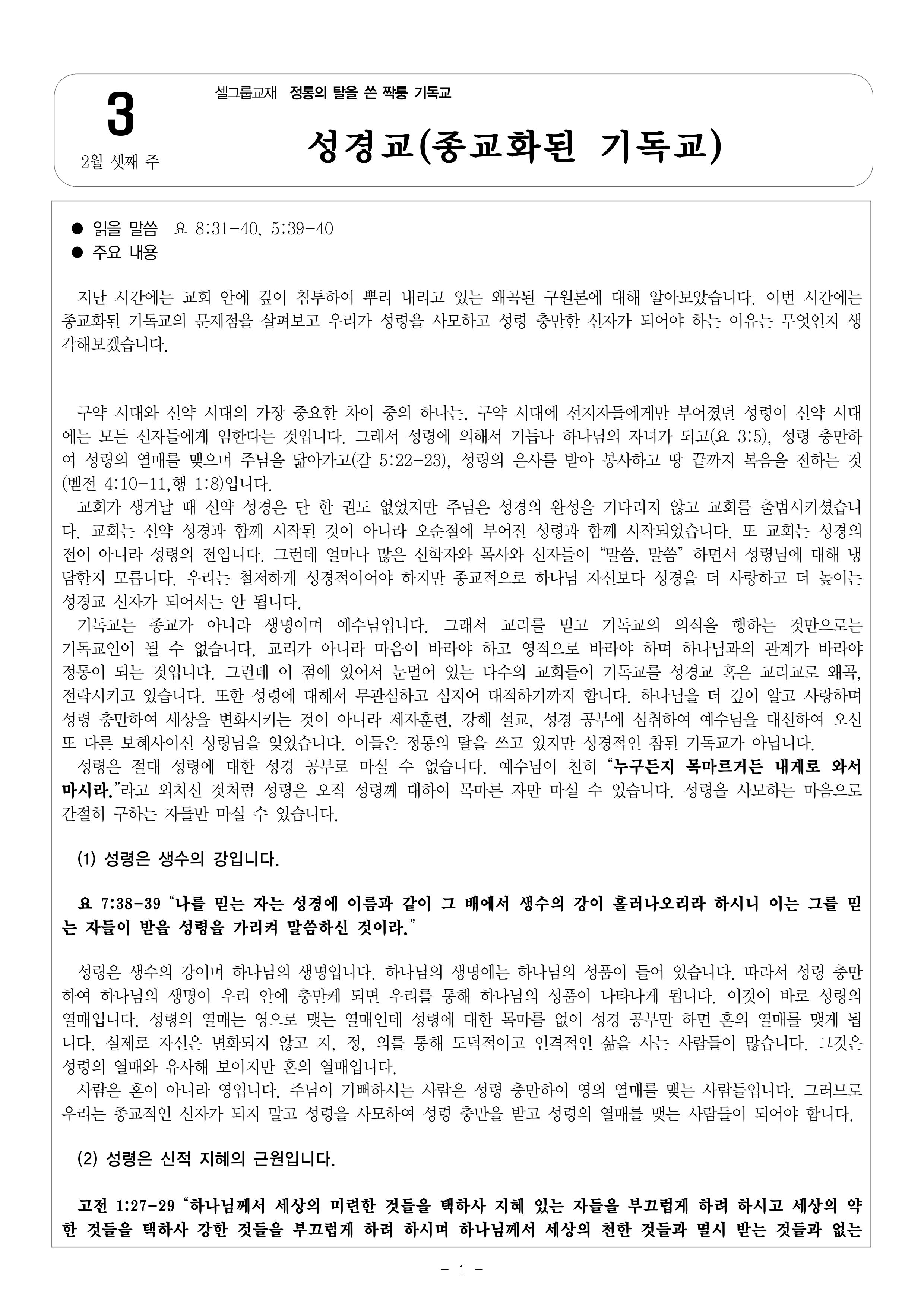 2월 셋째 주 셀그룹교재 [정통의 탈을 쓴 짝퉁 기독교]-[3]성경교(종교화된 기독교)