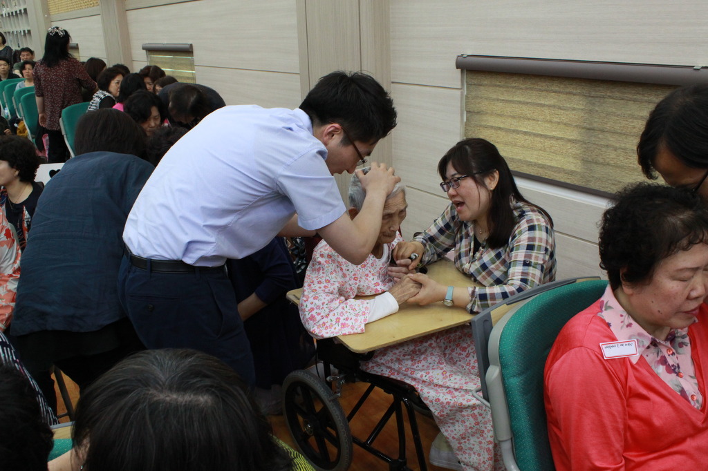 그런데 놀랍게도 김옥경 목사님과 사역자 분들의 기도를 받은 후 표정이 밝아 지셨고, 이전에는 식사를 거의 못하셨는데 그날 저녁에는 며느리 분께서 죽을 떠 드릴 때 마다 입을 크게 벌리며 맛있게 식사를 하셨습니다.