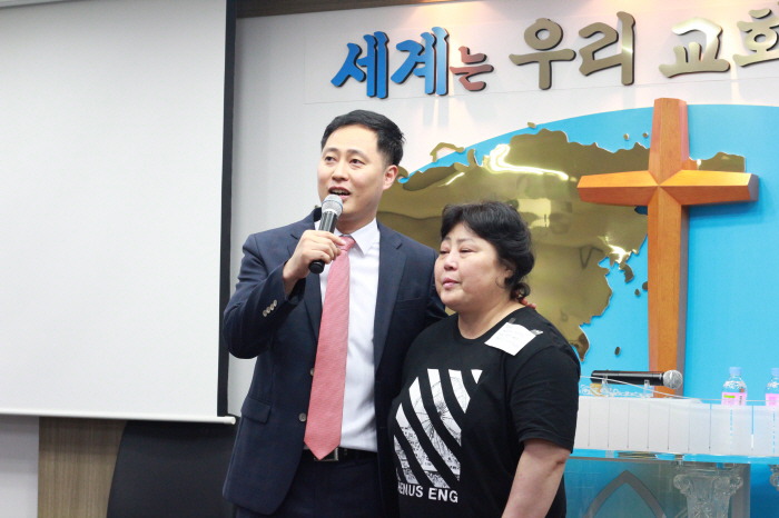사랑하는교회를 다니시는 아드님의 소개로 오신 타교인분입니다. 10년 전부터 어깨에 생긴 석회로 인해 통증이 있어 일상생활에 많은 어려움이 있었습니다. 오늘 성회 때 사역자들의 도움을 받으며 치유하시는 주님을 바라보게 되었고, 이후에 어깨를 움직여 보았을 때 통증이 완전히 사라지셨고 움직임이 자연스러워졌습니다. 치유를 행하신 주님을 찬양합니다.