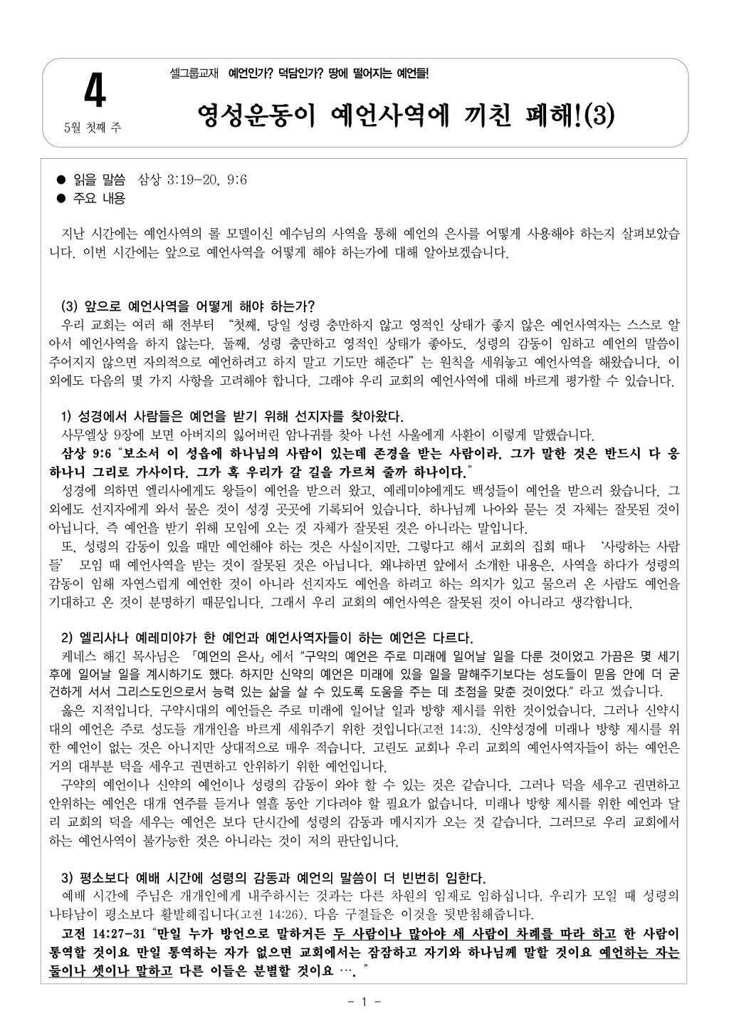 [예언인가? 덕담인가? 땅에 떨어지는 예언들! 4] 5월 첫째 주 셀그룹 교재입니다.