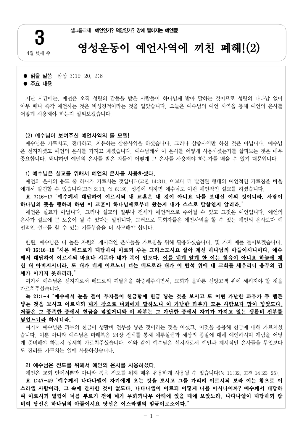 4월 넷째 주 셀그룹 교재입니다.