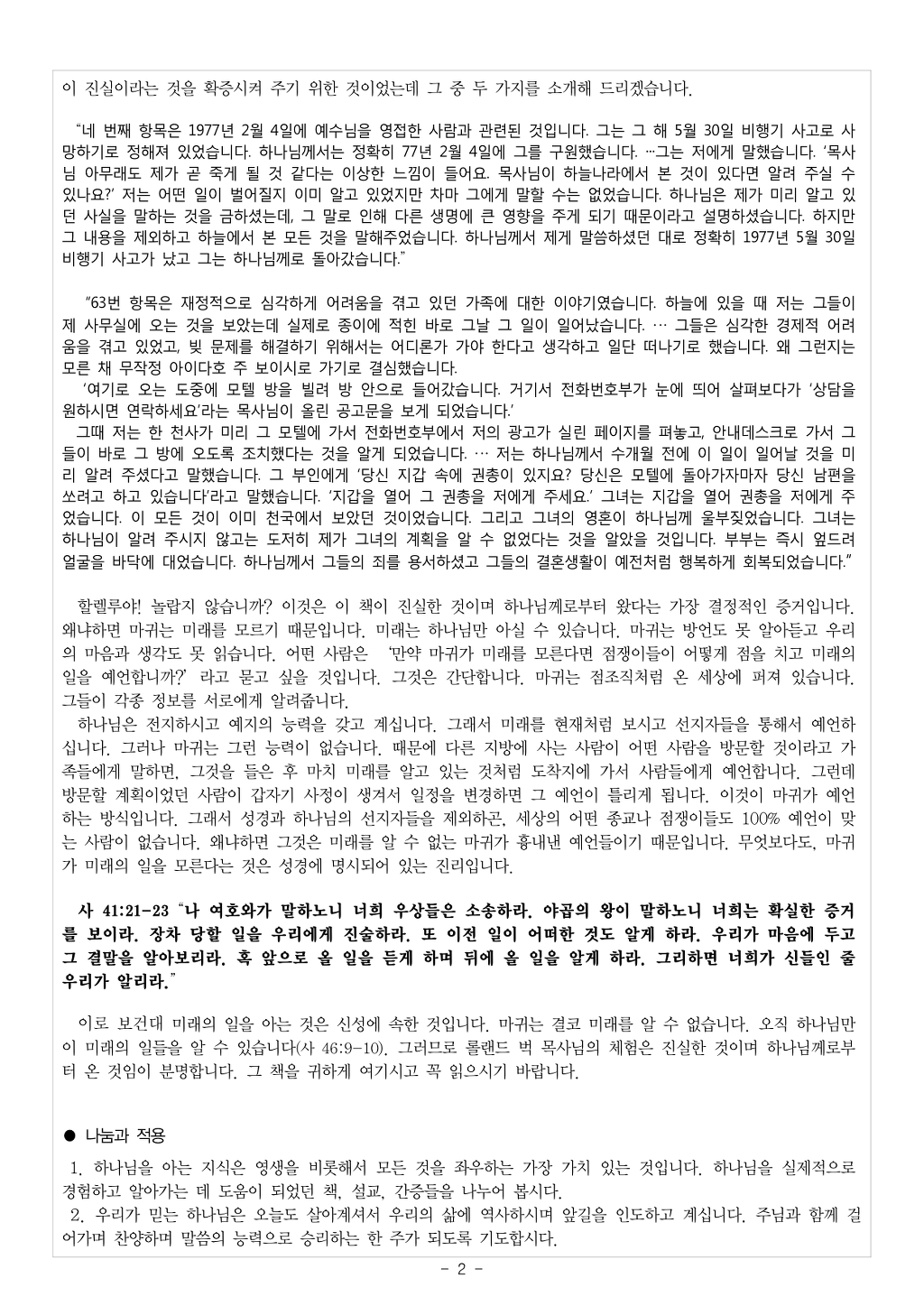 | 이전글 | [예수님이 전부입니다! 4] 11월 둘째 주 셀그룹 교재입니다. | Web Team | 2018-11-06 19:03:12 |