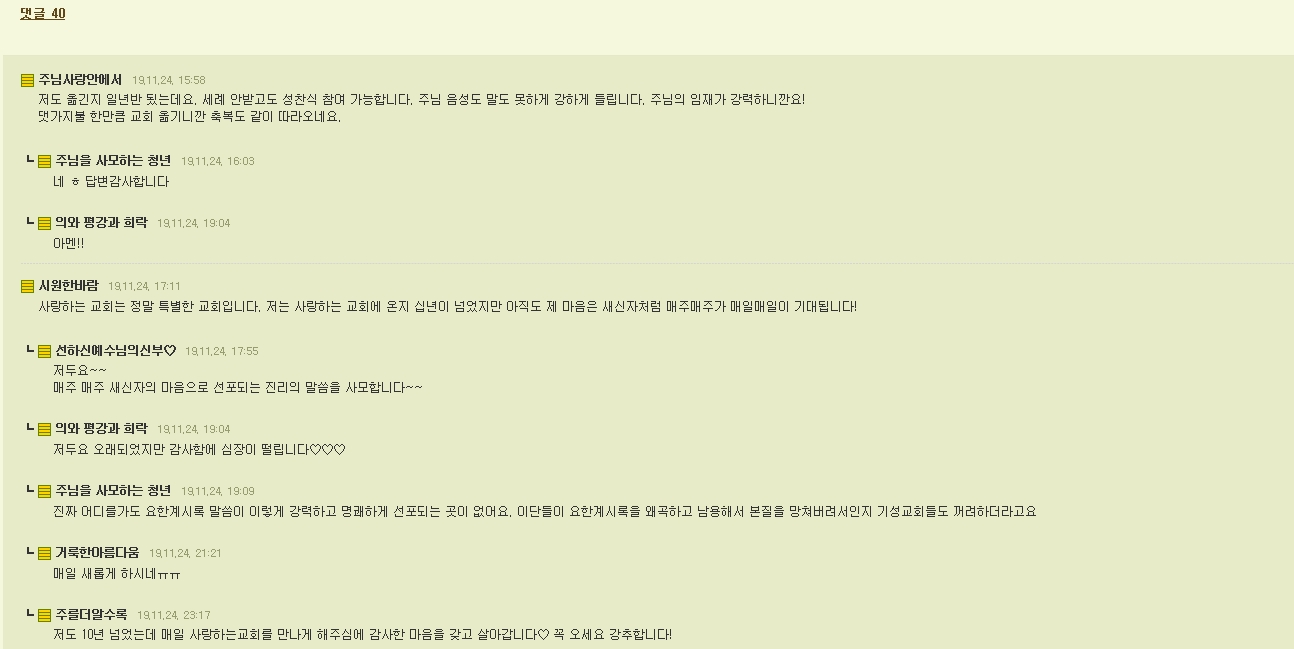 저는 비록 타교회에 다니지만 사랑하는 교회는 정말 주님의 특별한 은총이 있다는것을 매번 깨닫게 됩니다.