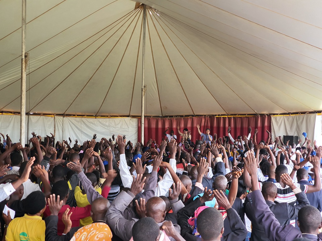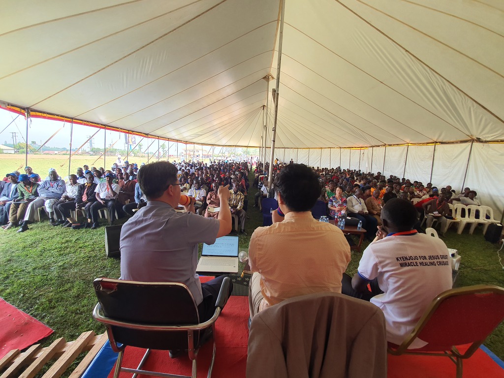 집회 강단 및 음향, 영상을 설치하는 업체의 차량이 오는 길에 문제가 생겨 수리를 하느라 집회 장소에 집회 전날 도착해 집회 준비에 많은 어려움이 있었습니다. 또한 집회 2시간 전부터 일기 예보에도 없던(참고로 우간다 키엔조조는 현재 건기임) 폭우가 쏟아졌고, 집회 초반까지 거의 2시간 가까이 비가 계속되어 집회를 시작하는데 많은 어려움이 있었습니다. 다행히 설교 시작 직전 비가 멈춰 말씀을 전할 수 있었습니다. 그런데, 설교 중간에 이 지역 전체의 행정과 치안을 담당하며 이 지역에서 정치적으로 가장 높은 주지사에 해당하는 사람이 집회에 찾아왔습니다. 그리고 행사를 주관하는 관계자가 행사접수를 제대로 못했다며 설교 중간에 강단 밑에서 소란을 피웠고, 급기야 다른 사람을 시켜 설교를 중단시키려 강단으로 올라오는 일이 있었습니다. 이런 상황속에서도 설교를 멈추지 않고 끝까지 말씀을 전했지만 많은 방해가 있었습니다.