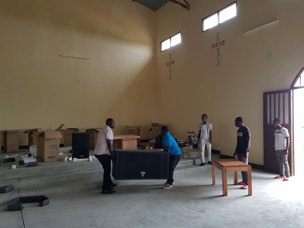 선교본부 교회에 의자와 음향 기기들이 들어왔습니다.
