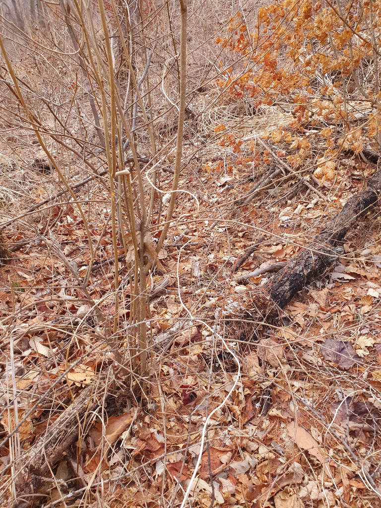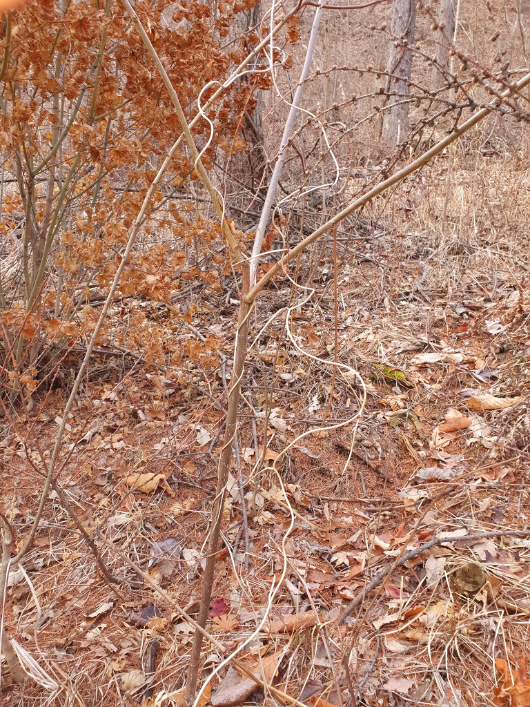 더 올라가니 뜻밖에 더덕 줄기가 몇 개 나타납니다.
