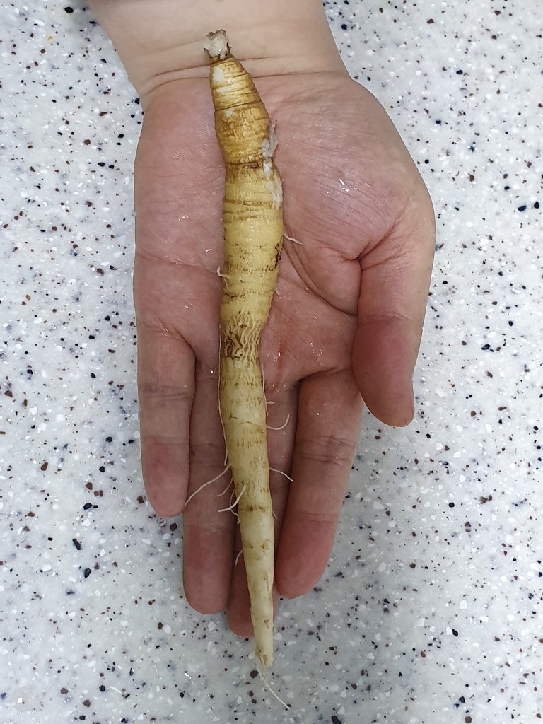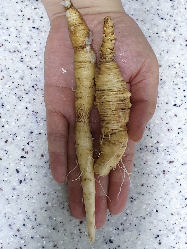 보여드릴까요? 지난 주 주문한 검은 화산토에서 재배한 제주산 더덕입니다.