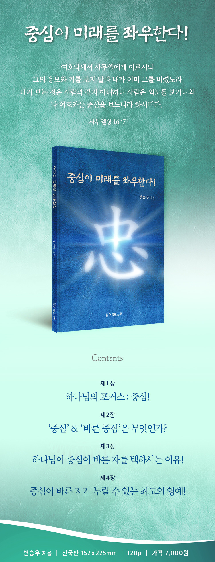 담임목사님의 신간 "중심이 미래를 좌우한다!" 초판이 완판되었습니다. 그래서 재판을 찍습니다.