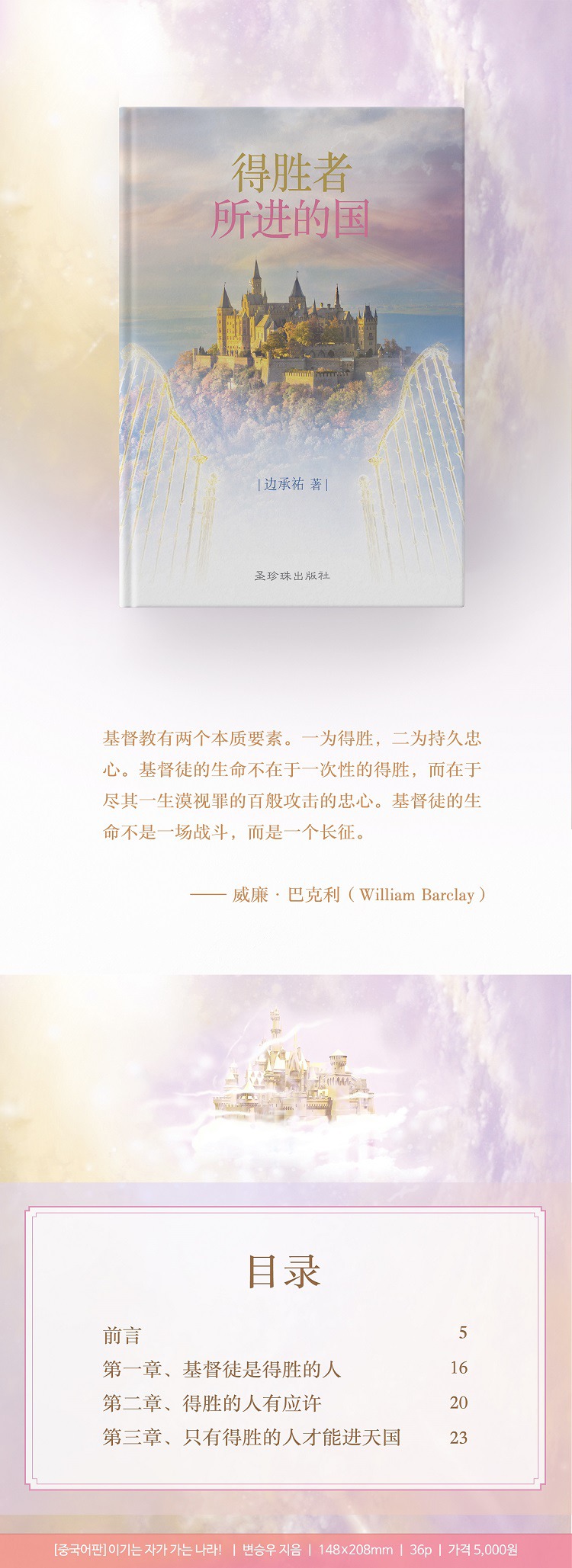 할렐루야! 도서출판 거룩한진주의 178번째 책, 중국어판 "이기는 자가 가는 나라" 가 출판 되었습니다!