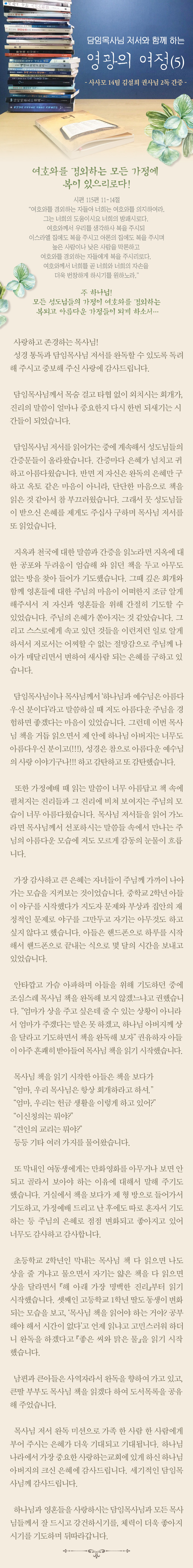 "담임목사님 저서와 함께 하는 영광의 여정(5)" (사사모 14팀 김설희권사님 간증)