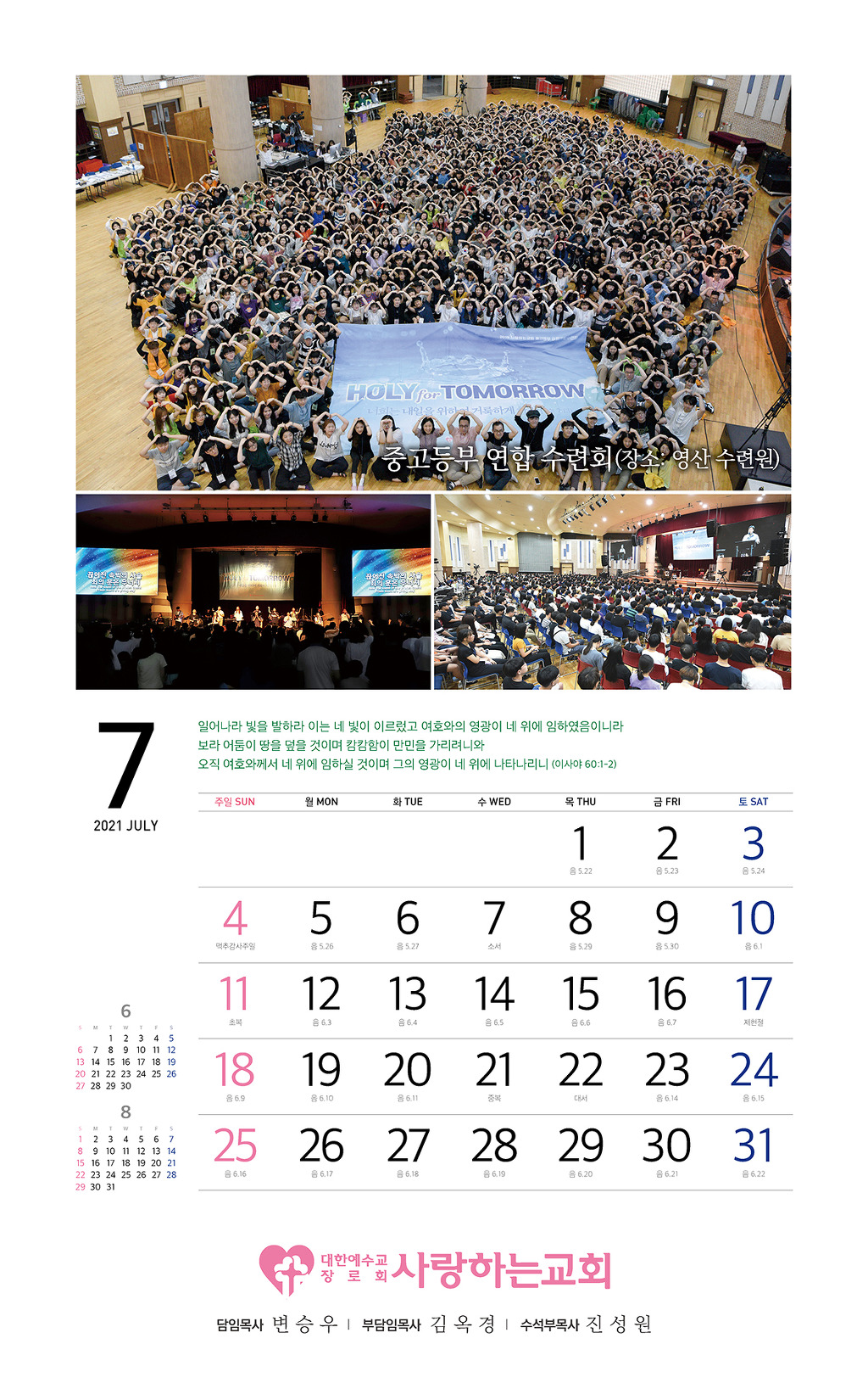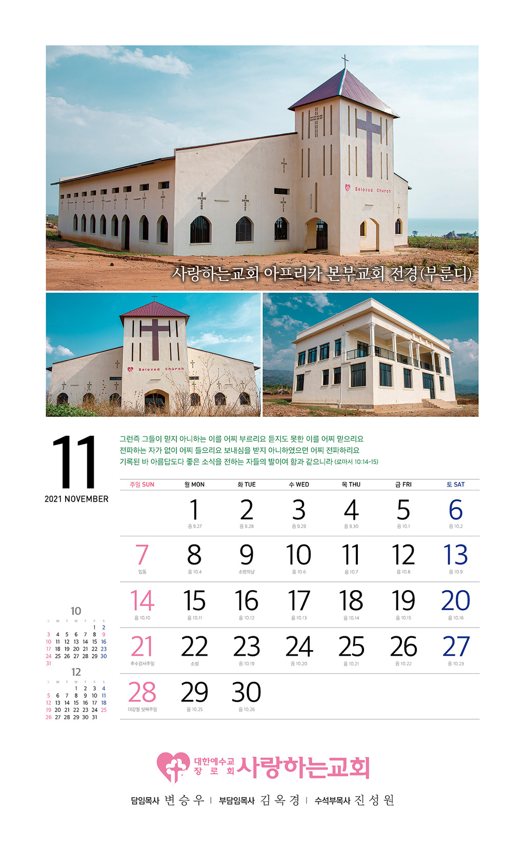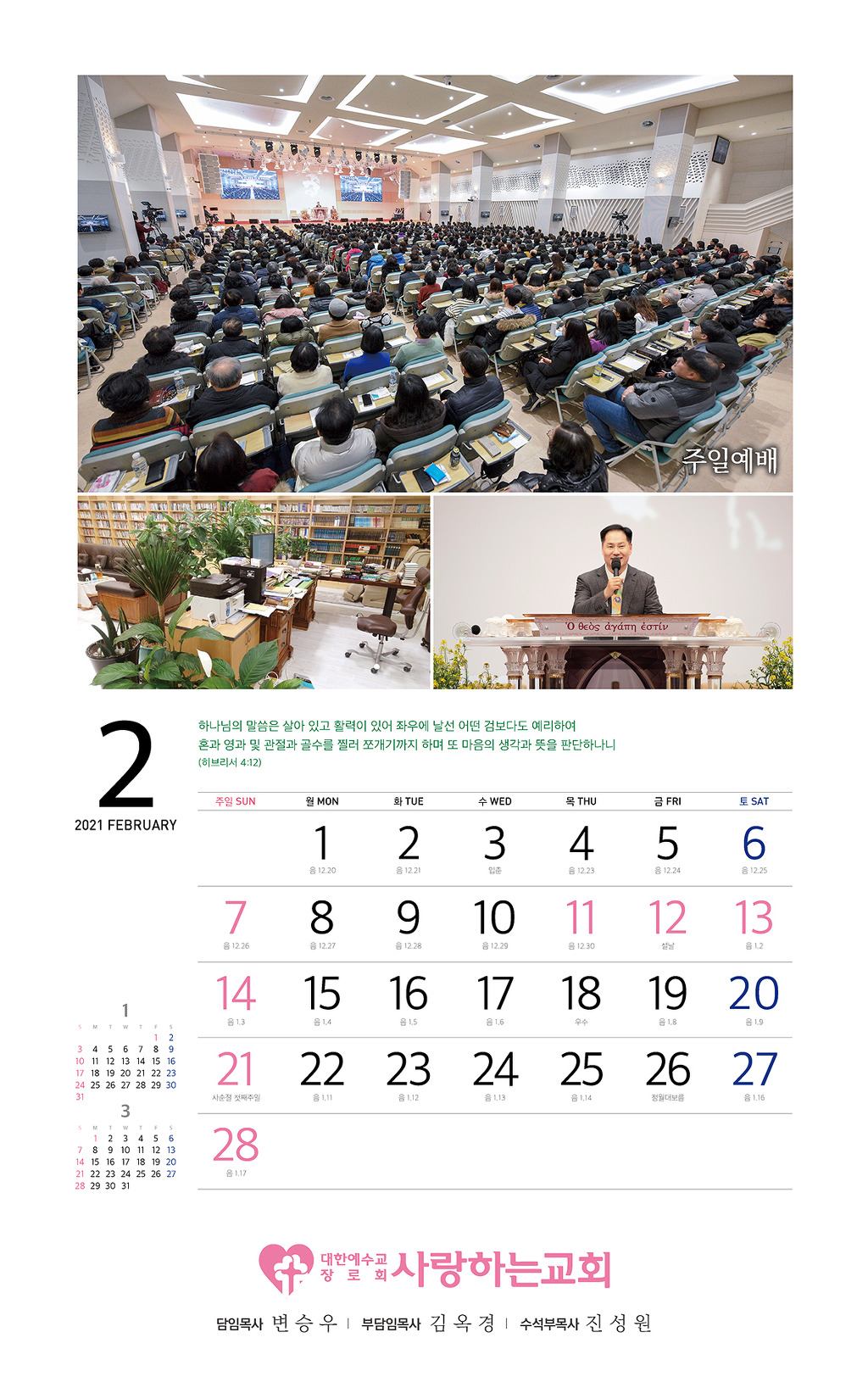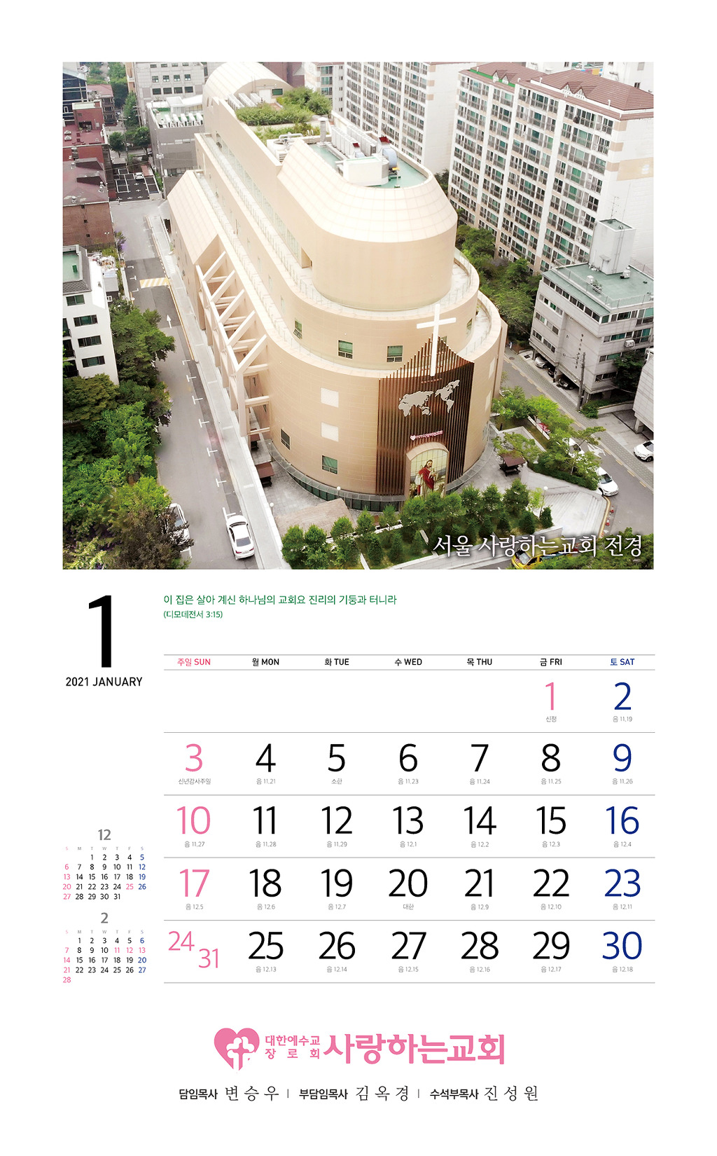 할렐루야! 2021년 교회 달력을 자체 제작했습니다.