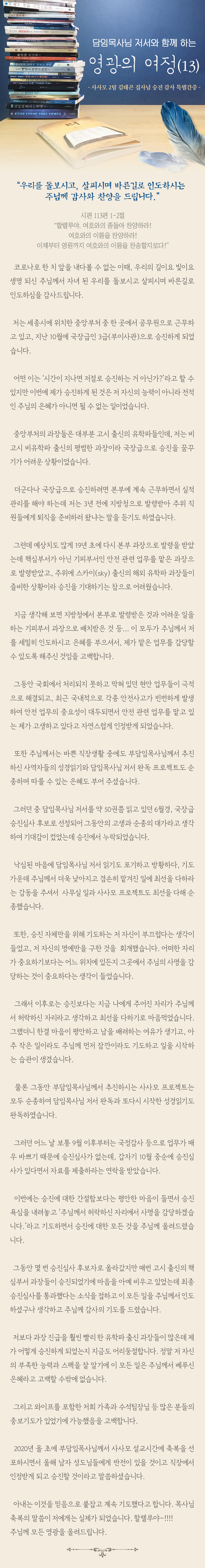 "담임목사님 저서와 함께 하는 영광의 여정 (13)" (사사모 2팀 김태곤 집사님 승진 감사 특별간증)