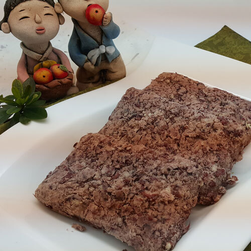 국산 찹쌀과 국산 팥만 사용해서 만든 찹쌀팥시루떡입니다(그래서 글자 색도 팥 색깔로 했습니다. ㅎㅎㅎ).