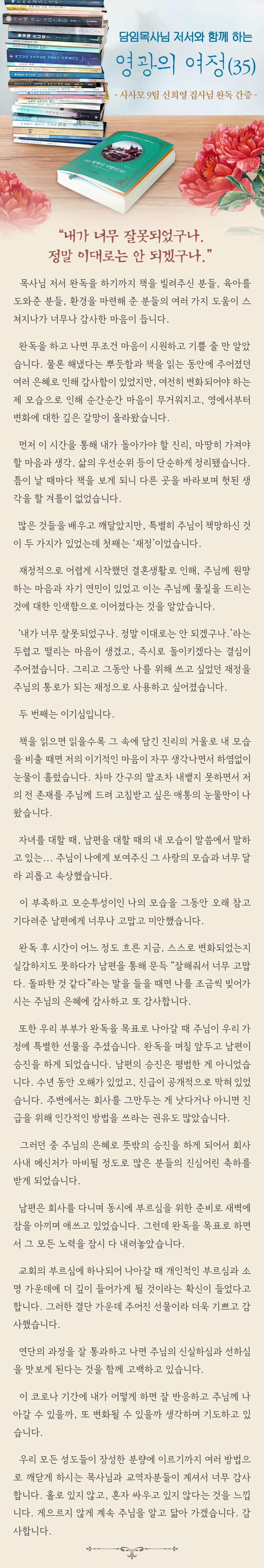 "내가 너무 잘못되었구나. 정말 이대로는 안 되겠구나." (사사모 9팀 신희영 집사님 완독 간증)