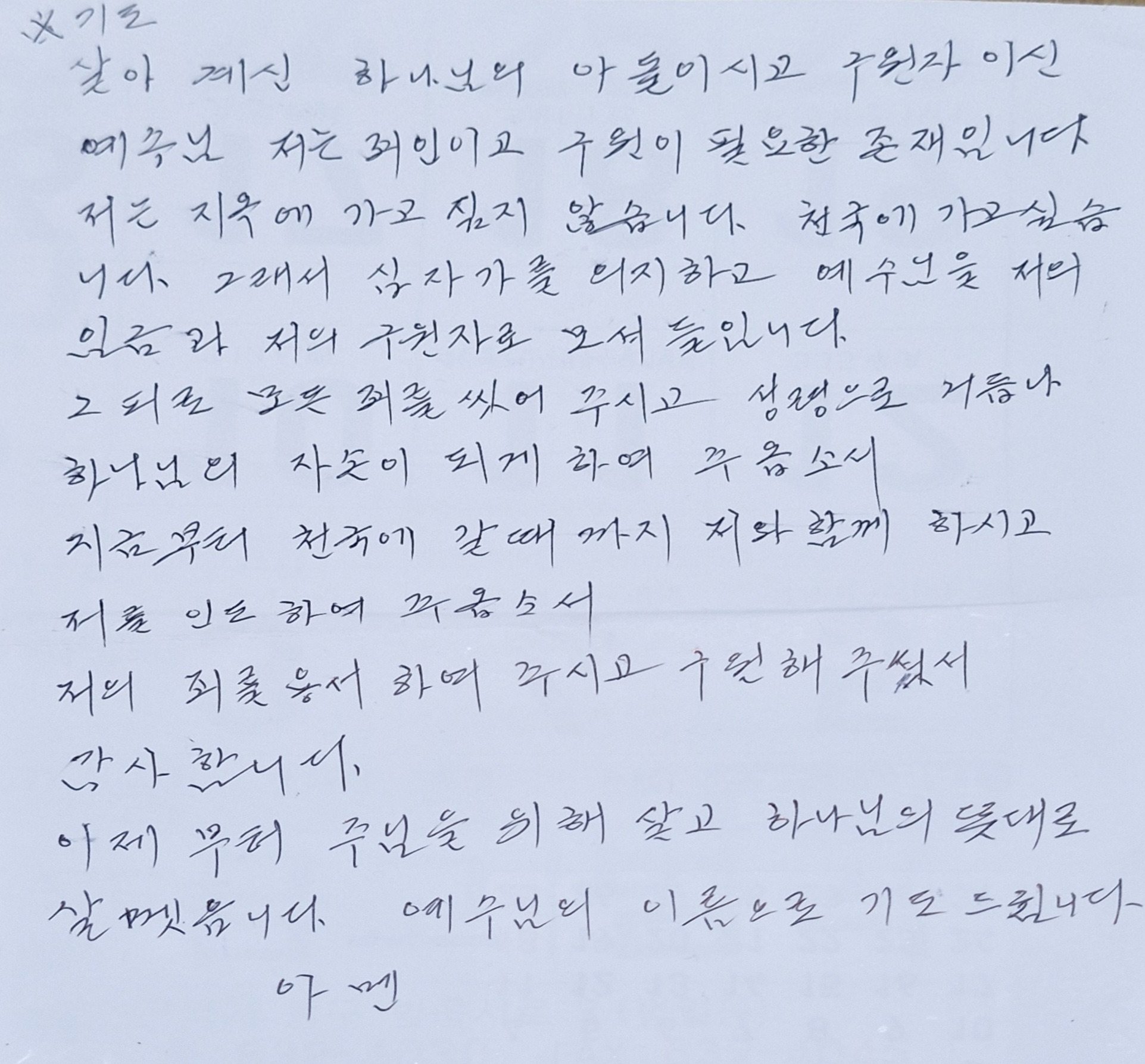 마지막으로 친정 아버지가 직접 작성하신 기도문을 올려 드립니다.