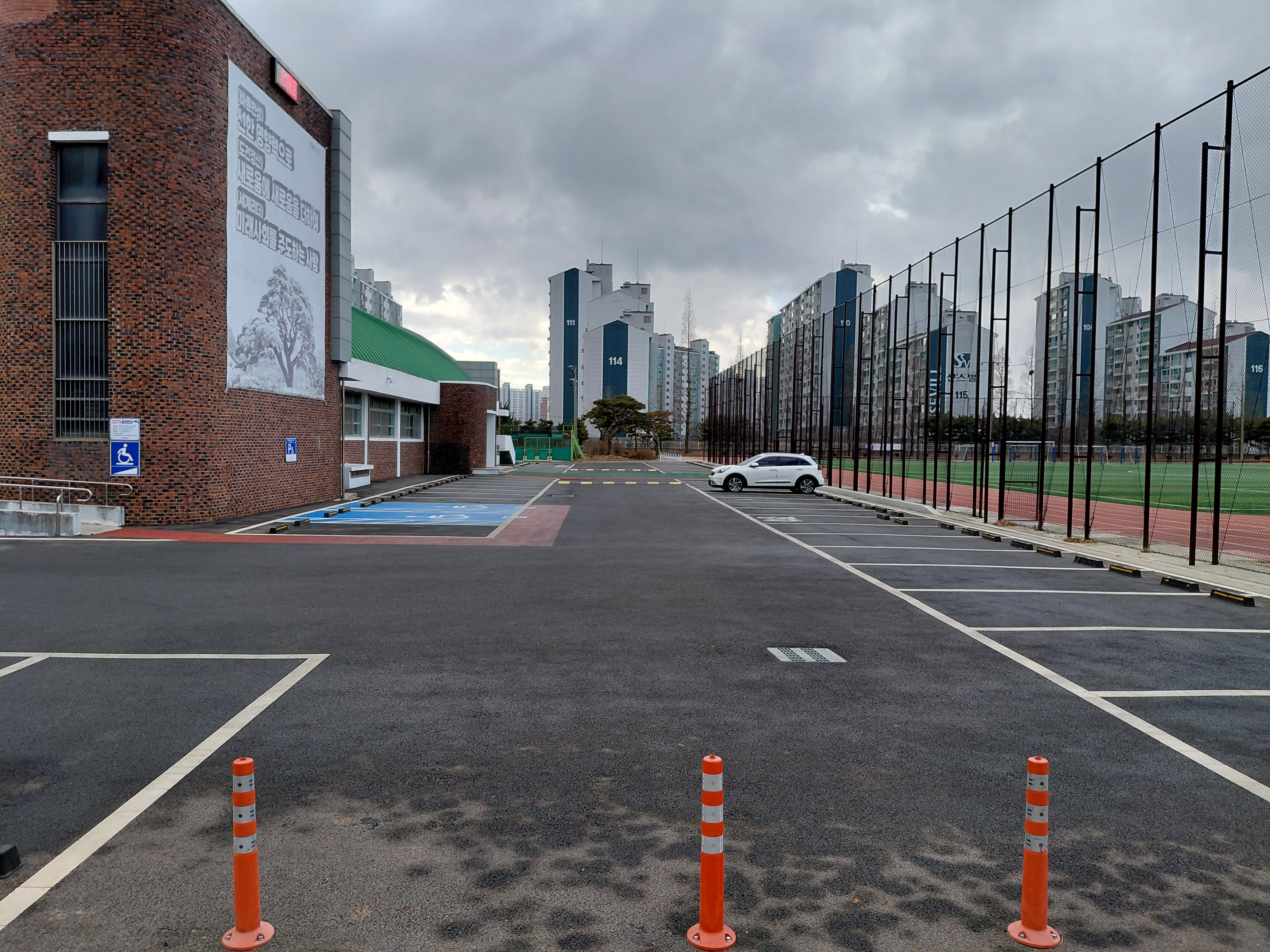2. 교회 건너편 서산중학교 학생체육관 입구로 들어오시면