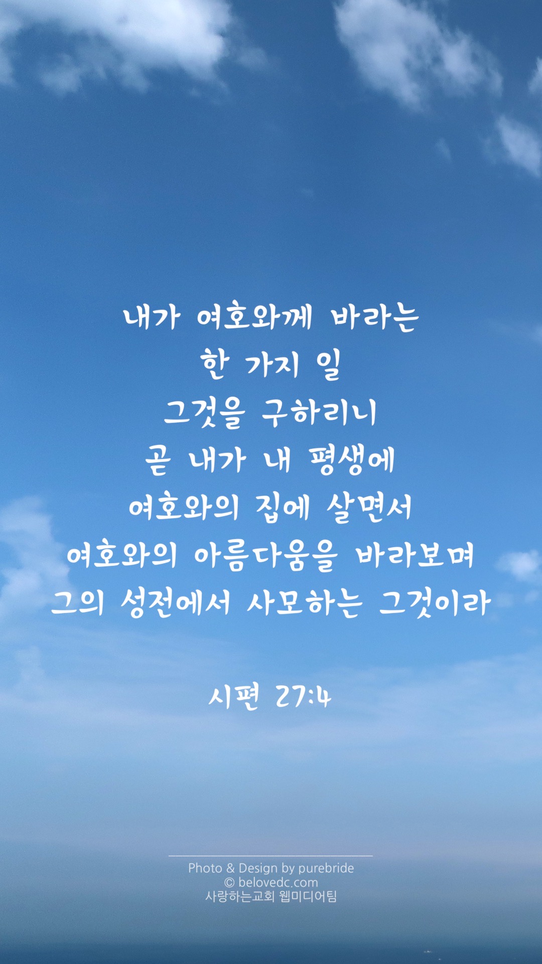내가 여호와께 바라는 한 가지 일 그것을 구하리니