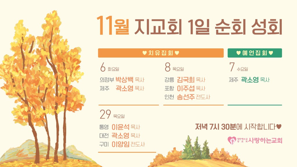 2018년 11월 지교회 순회치유성회 일정표