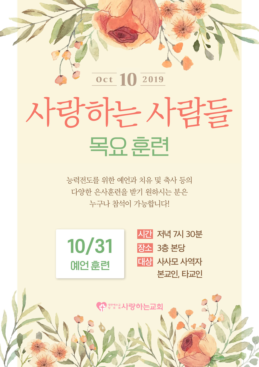 '사랑하는 사람들' 목요 훈련 안내 (2019년 10월)