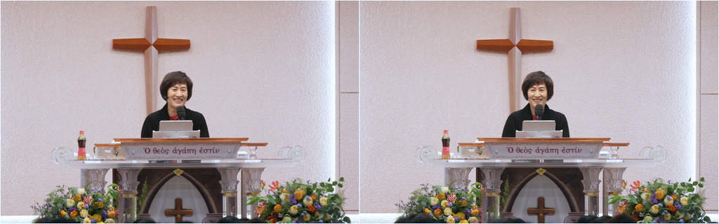<2> 50대 대구 '사랑하는교회' 여자 성도님은 아주 어렸을 때 원인을 알 수 없이 오른쪽 눈의 시력이 약해지기 시작했습니다. 시간이 지나자 아무것도 보이지 않게 되어 20여년 동안 실명 상태로 지내왔습니다. 병원에서는 안 보이는 눈이라도 균형을 위해 사용하라고 했지만 왼쪽 눈만 사용하게 되었고, 사시현상도 생겨 병원 치료도 받아보았지만 효과가 없었습니다.