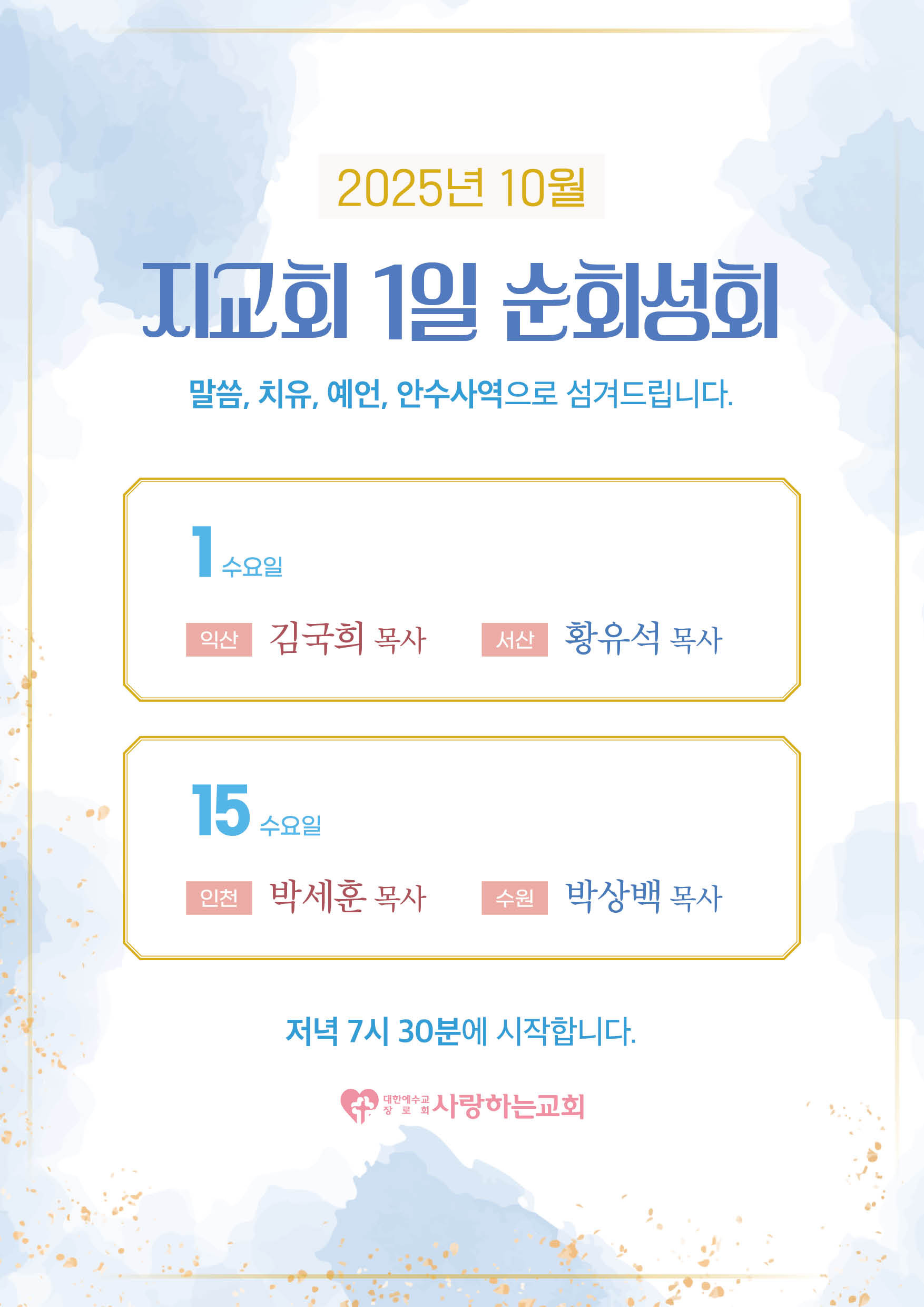 2025년 10월 "지교회 1일 순회성회" 일정표