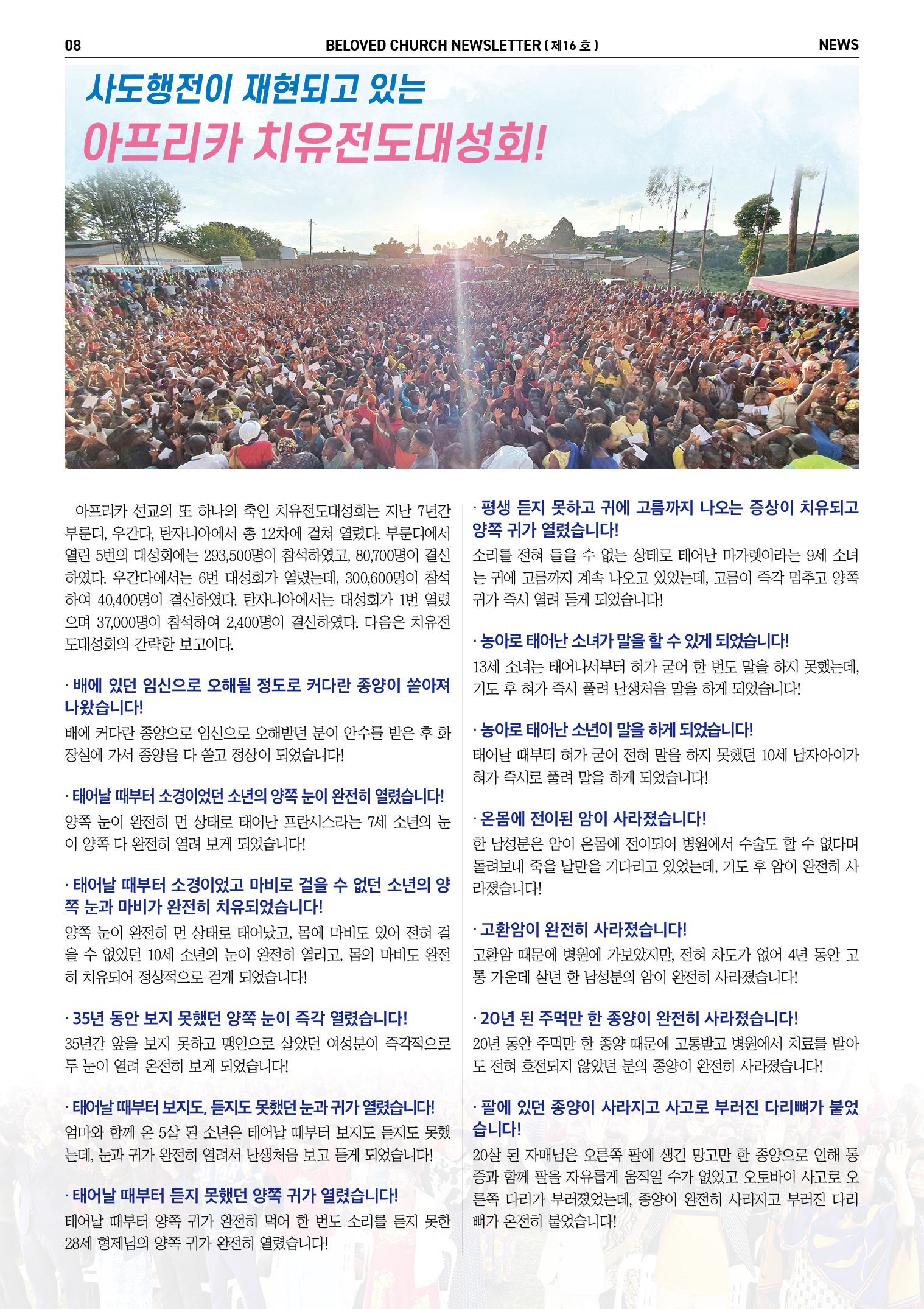당부드리는 말씀: 요즘 인쇄소들이 바빠서 일단 어제 1만부를 찍었고 1차로 모두 5만부를 찍습니다. 그런데 이번 소식지는 지면이 많은 관계로 제작비가 비쌉니다. 그러므로 노방전도를 하면서 지나가는 사람들에게 무작위로 나눠주는 것을 금합니다. 가족과 친척과 직장동료와 지인 그리고 전도대상자 중 관심을 가지고 꼭 읽을 분들에게만 선별적으로 나누어 주시기 바랍니다. |