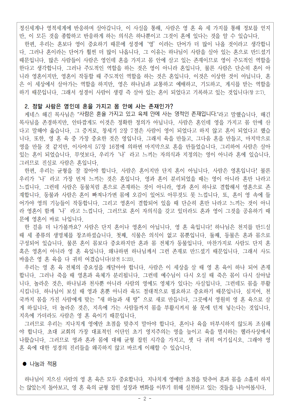 | 다음글 | [영과 혼에 대한 궁금증이 풀리다! 너 자신을 알라! 10] 2월 첫째 주 셀그룹 교재입니다. | Web Team | 2026-02-03 11:31:00 |