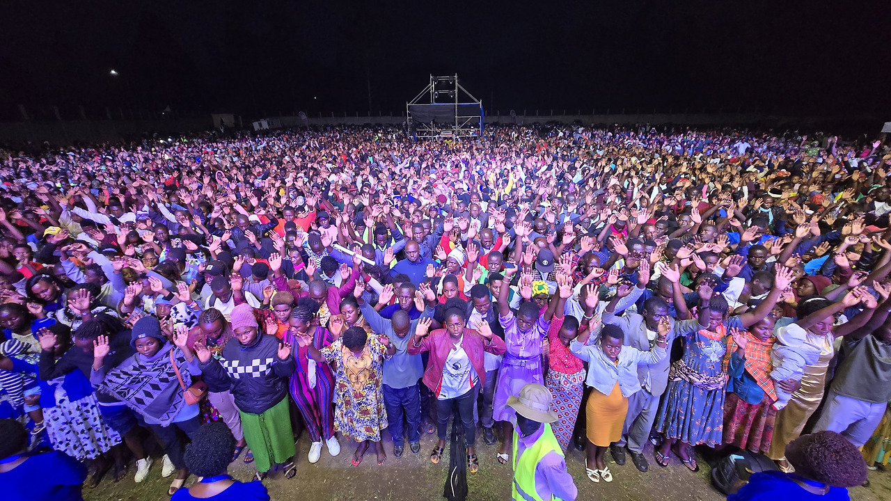 지금까지 진행된 성회 중 가장 많은 15,000명이 나와서 결신하는 모습!!!