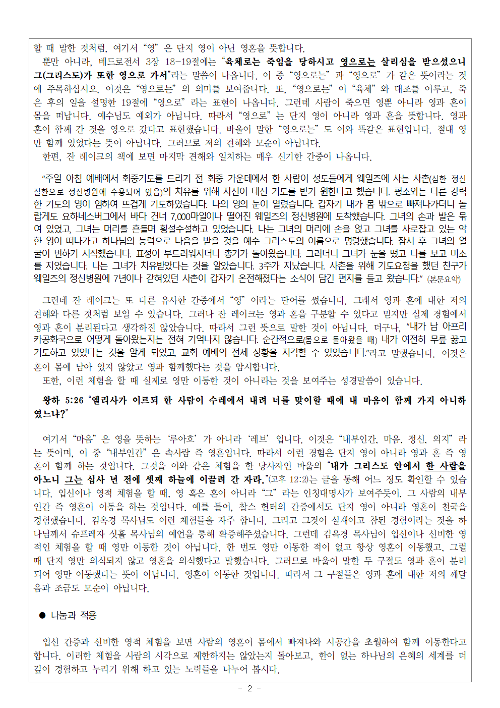 | 다음글 | [영과 혼에 대한 궁금증이 풀리다! 너 자신을 알라! 16] 3월 넷째 주 셀그룹 교재입니다. | Web Team | 2026-03-24 00:00:00 |