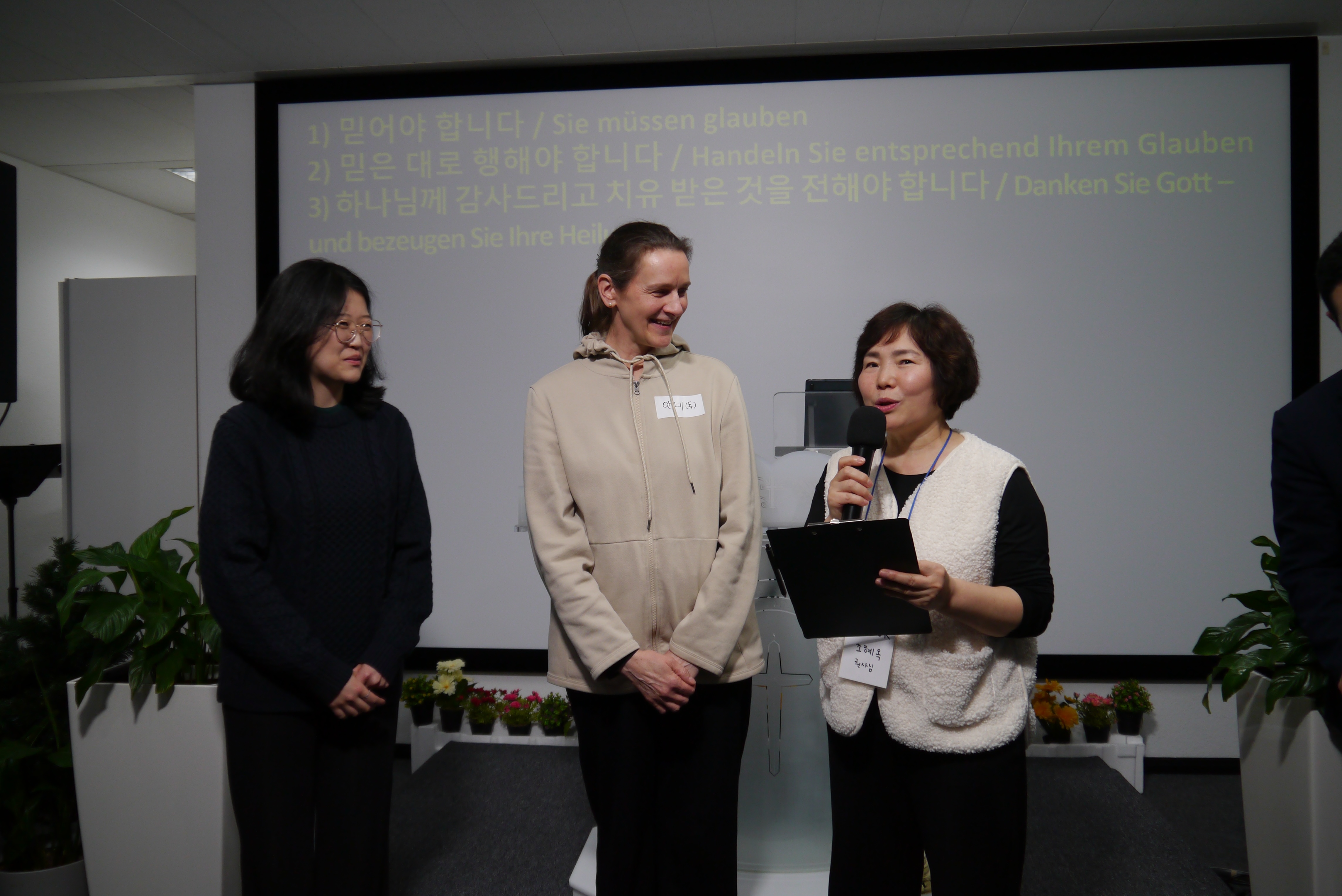 독일에서 진리를 전하는 교회들은 점점 사라지고 동성애를 인정하는 등 진리를 타협하는 이 시대에 큰 안타까움을 느끼셨는데, 오늘 전해주시는 말씀에 큰 은혜를 받으셨습니다. 모든 말씀에 전적으로 동의가 된다고 하시며 독일에 타협되지 않은 진리를 전하는 사랑하는교회가 있어 감사하다는 고백을 하셨습니다.