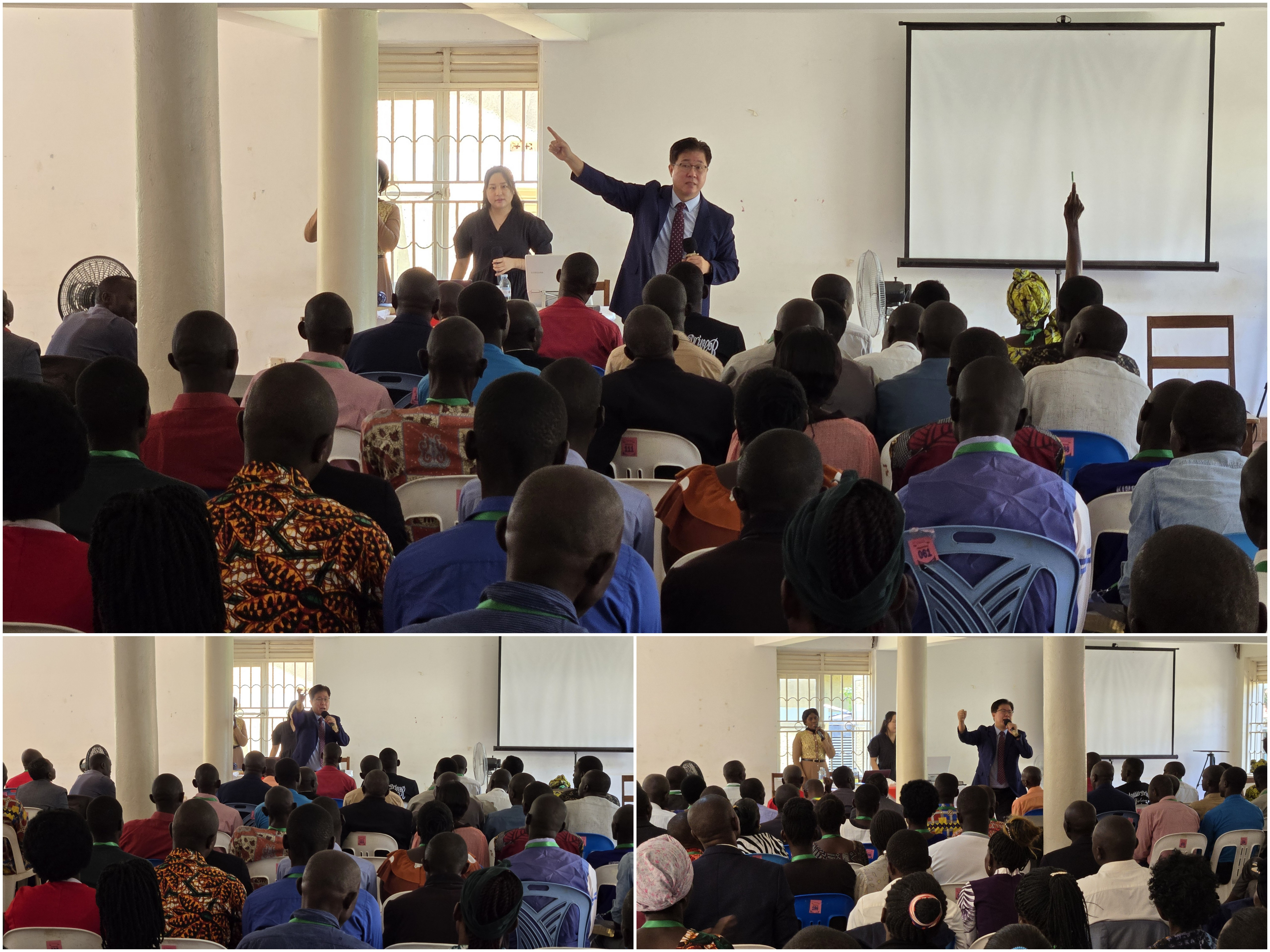 이번 지교회 목회자세미나는 지난해 7월과 10월에 있었던 우간다 포트포탈, 음바라라 목회자세미나와 올해 1월에 있었던 우간다 포트포탈 치유전도대성회 때 큰 은혜와 도전을 받은 목회자들과 그 외에 우간다 여러 지역에서 있었던 목회자세미나와 치유전도대성회를 참석한 후 신청한 목회자 640여 명을 대상으로 서면 심사 및 인터뷰를 진행하였습니다. 그 결과 최종 통과한 인원 중에 1차로 세 종류의 언어를 사용하는 171명의 목회자들을 대상으로 4월 1일(수)부터 3일(금)까지 세미나를 진행하였고, 2차로 또 다른 세 종류의 언어를 사용하는 202명의 목회자들을 대상으로 세미나를 진행하였습니다. 219명이 현장에 왔고, 현장에서 진행된 최종 인터뷰에서 적합하지 않은 17명이 추가로 확인되어 최종 202명이 세미나에 참석하게 되었습니다. 우간다는 각 지역별로 언어가 달라 이번에도 세 그룹으로 나눠 루간다어, 룬얀콜레어 그리고 루기수어로 통역하며 세미나를 진행하였습니다.