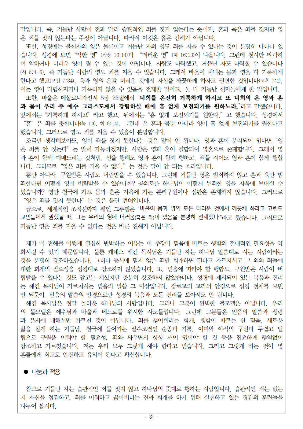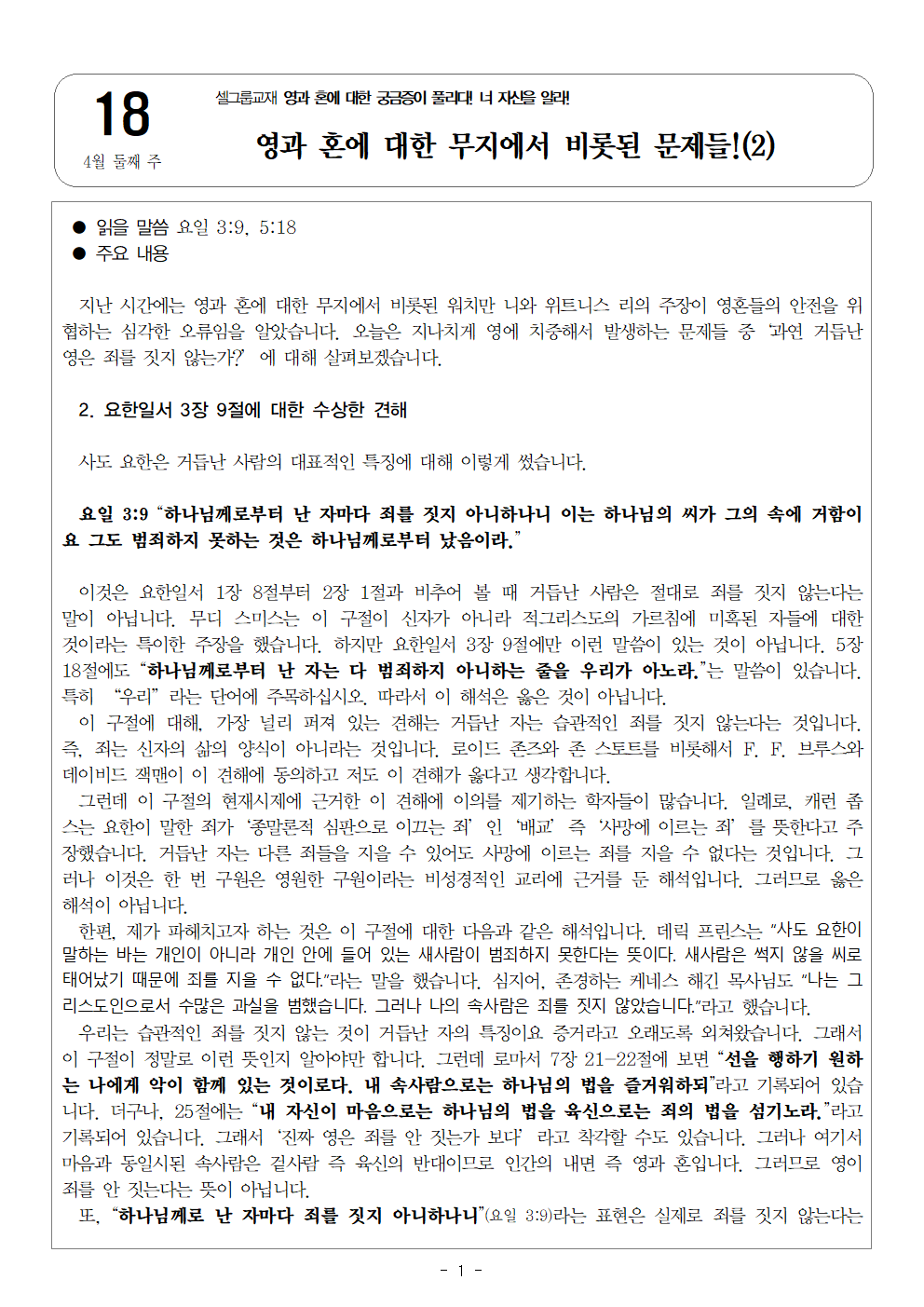 | 다음글 | [영과 혼에 대한 궁금증이 풀리다! 너 자신을 알라! 19] 4월 셋째 주 셀그룹 교재입니다. | Web Team | 2026-04-14 11:43:00 |